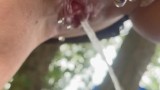 Peeing in the woods close-up