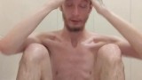 Very skinny fresh out of bath teen stretches his sexy perfect skinny body