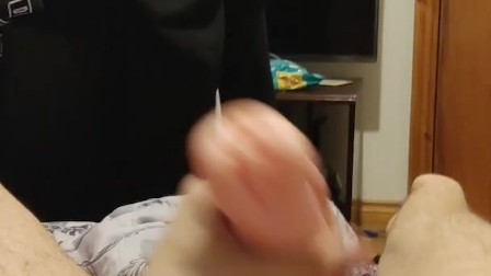 Skinny masturbates with his fleshlight and has leg orgasm
