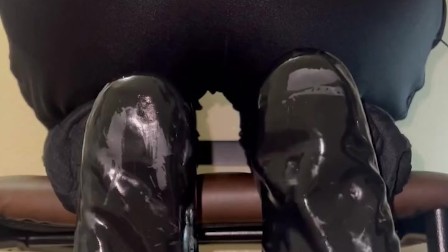 Black Latex Toe Socks & Oil footplay